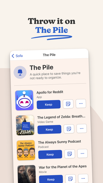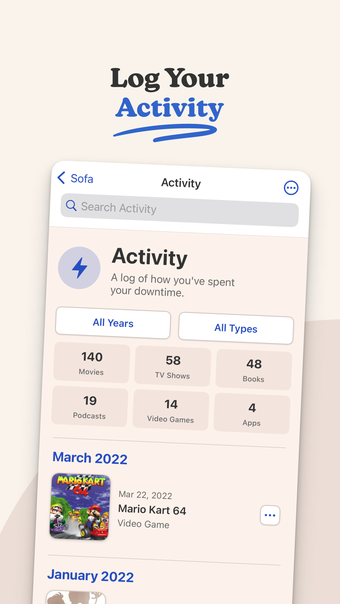 سوفا: منظم الأوقات الفراغية هو تطبيق للآيفون تم تطويره بواسطة Astrio LLC. إنه تطبيق مجاني للأعمال والإنتاجية تم تمييزه من قبل Apple كتطبيق اليوم. سوفا يوفر طريقة سهلة وفعالة لتنظيم وقت فراغك. يتيح لك إنشاء قوائم للكتب والأفلام والمسلسلات التلفزيونية والبودكاست وألبومات الموسيقى وألعاب الفيديو التي يمكنك الاستمتاع بها لاحقًا. صمم سوفا لالتقاط وسائط مثيرة في لحظات عشوائية، ويوفر ميزة البحث السهلة و"الكومة" حيث يمكنك حفظ العناصر التي لست جاهزًا لتنظيمها بعد.